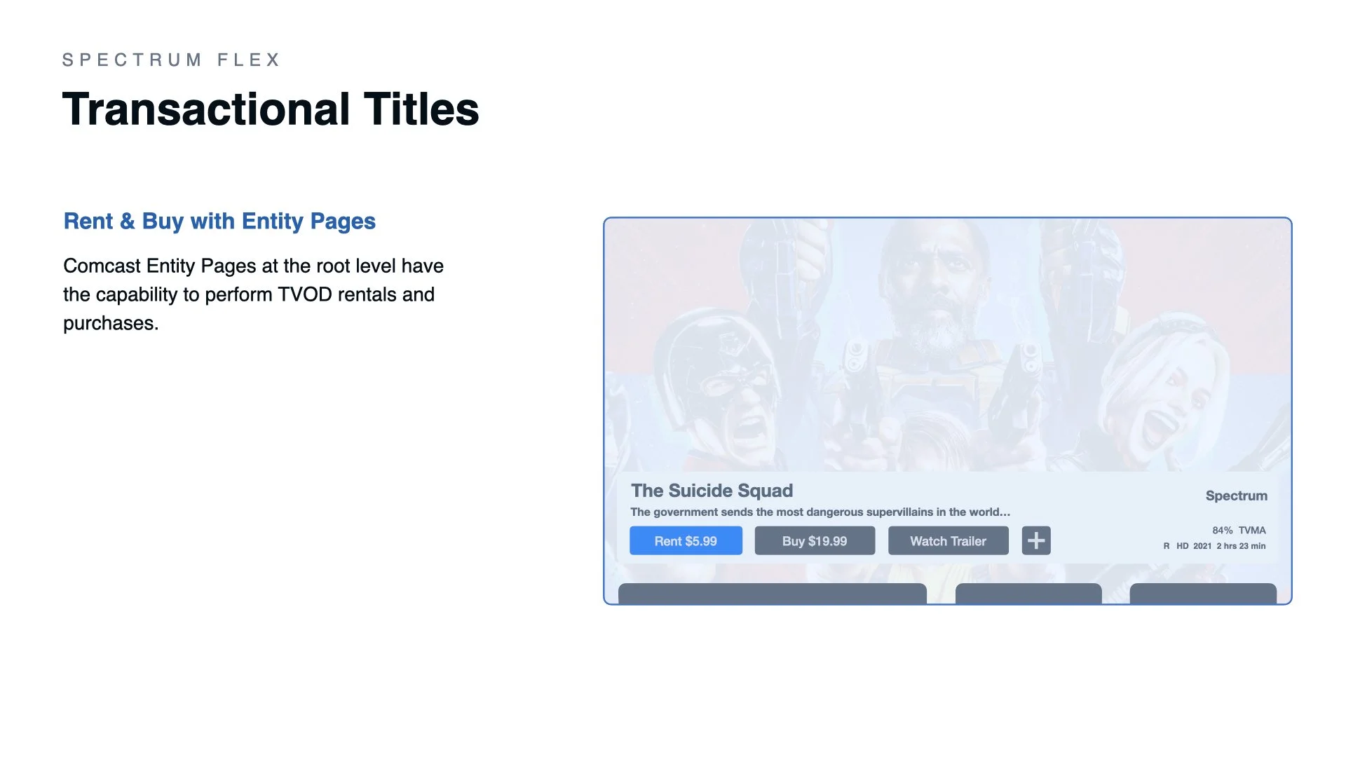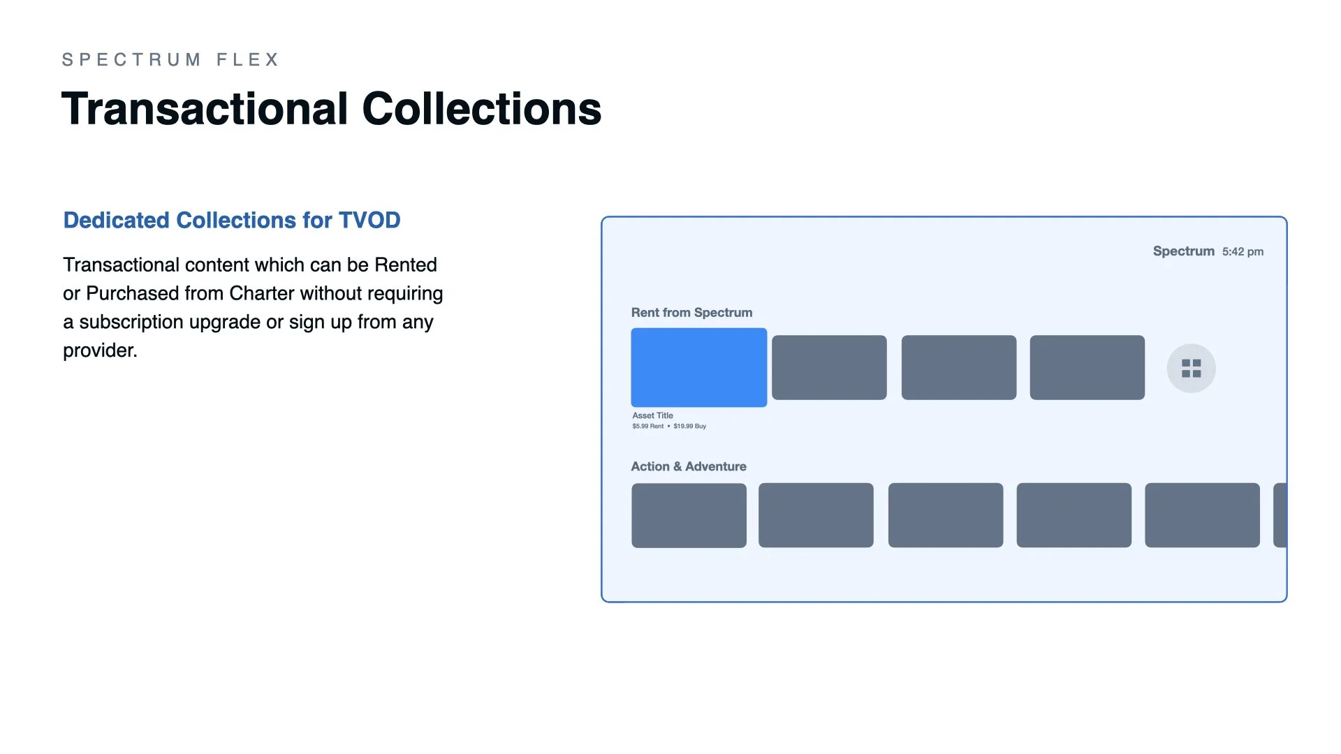 The Xfinity Flex project was unique from other Spectrum OTT platforms in that it utilizes a strict UI framework with no room for custom UI modifications. As such it was my responsibility to complete both UI and UX work for this project without the assistance of a dedicated UI design partner.